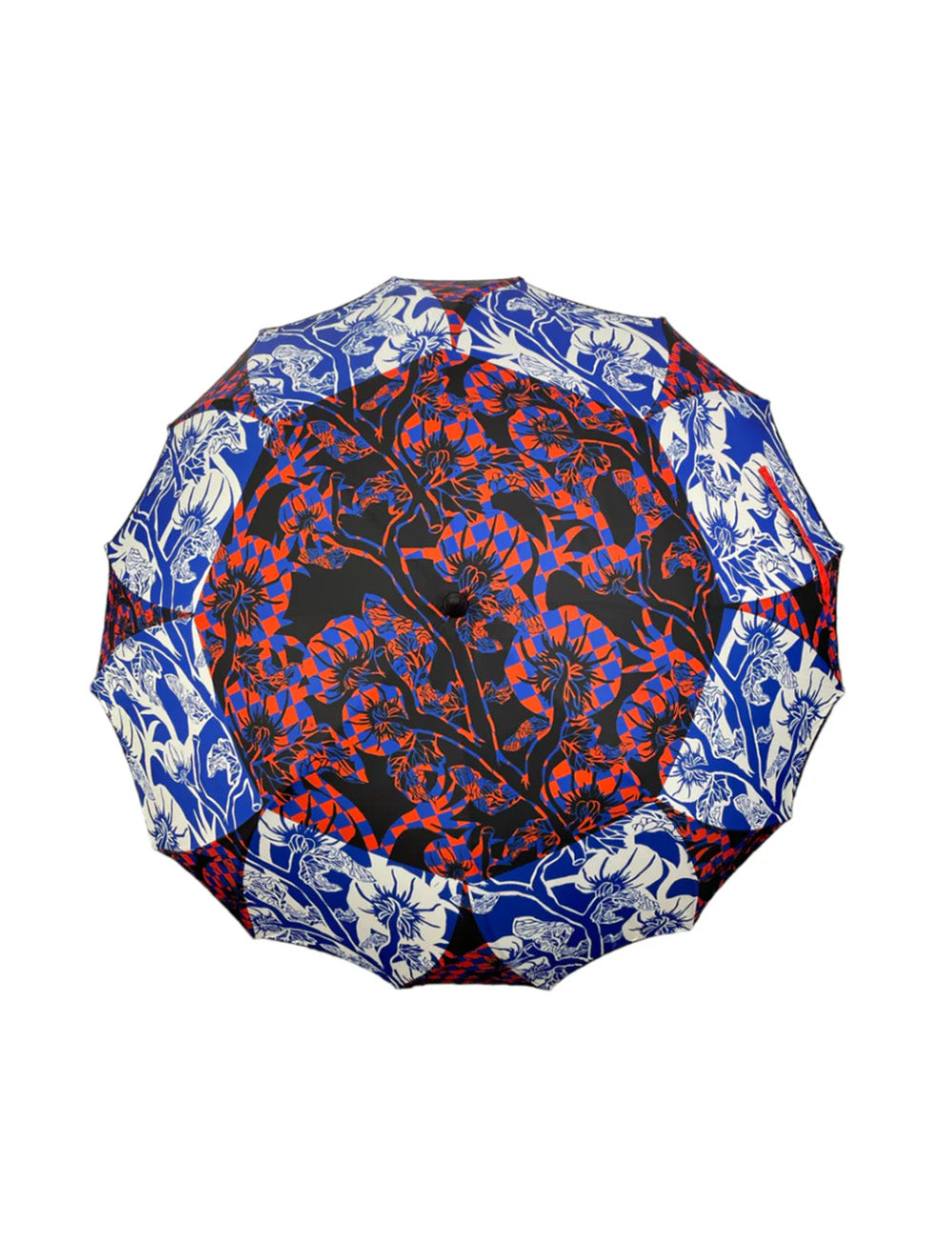Timeless, cool greenhouse print stick umbrella with curved handle by Henrik Vibskov.