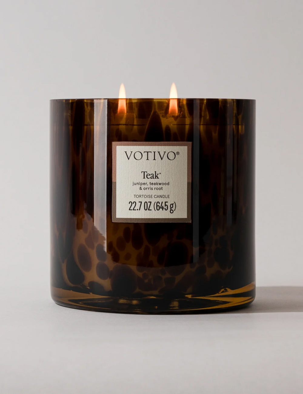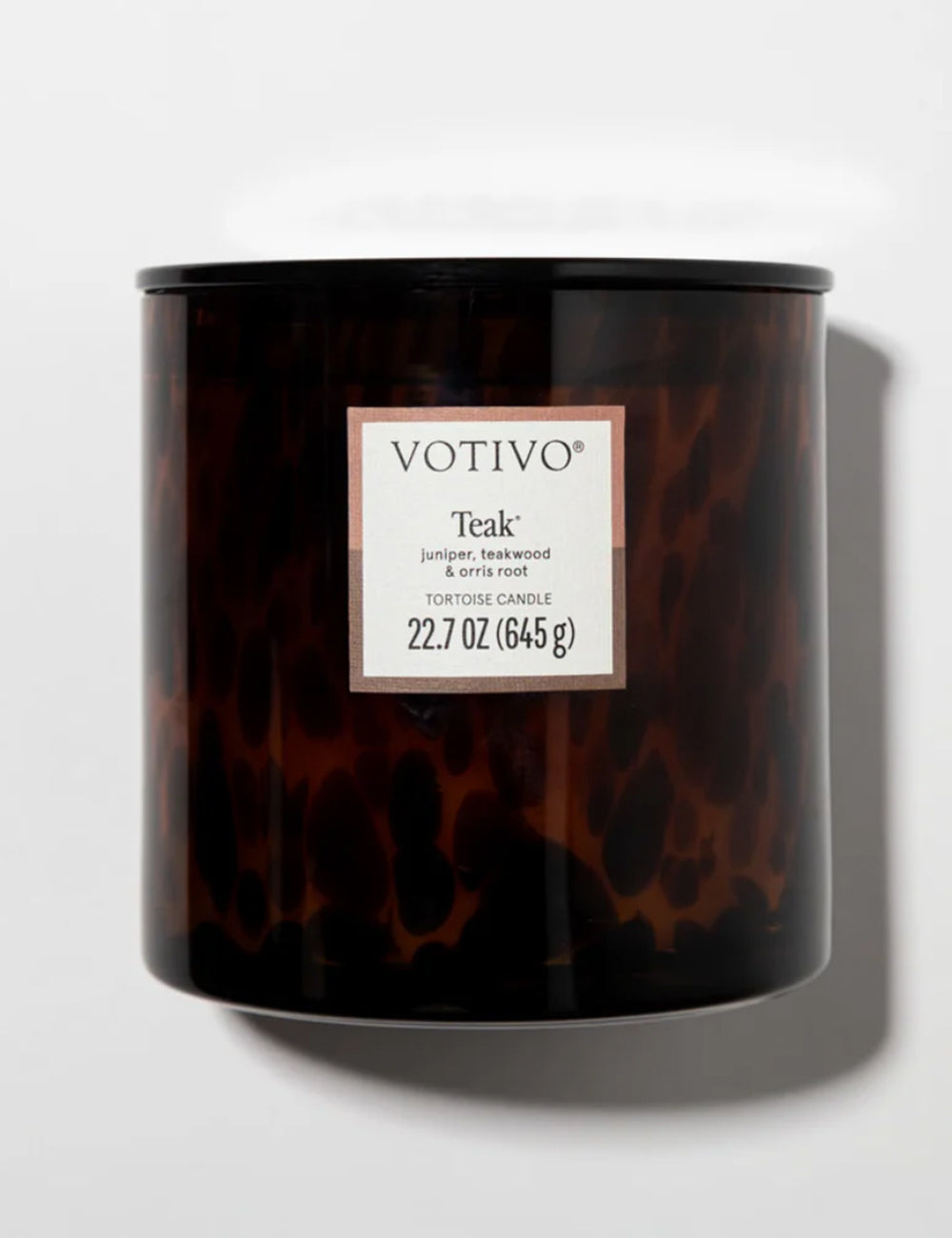 Make a stunning décor statement in any space with the Votivo Tortoise Candle, an elegant tortoiseshell vessel with a chic glossy metal lid. Smells like dry woods + earthy musk. Feels like a steep climb through towering trees amidst shifting sunlight.