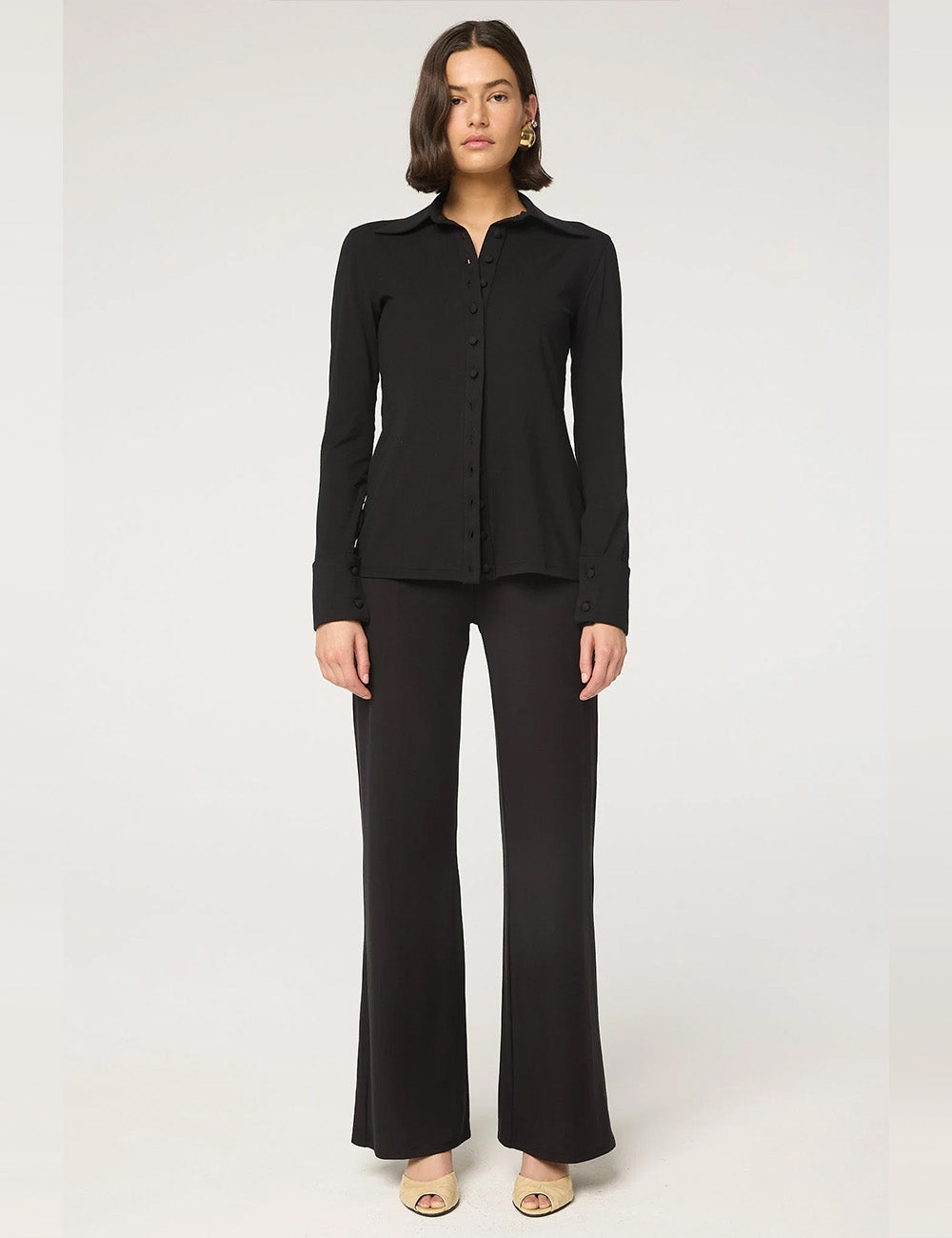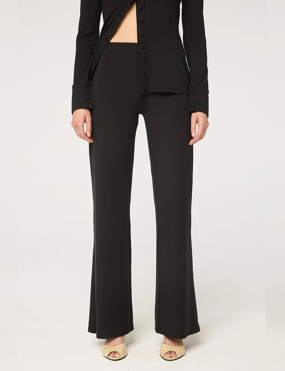 With a flared leg and stretch waistband, the Woodley is a 2-ply pant that is equal parts pragmatic, comfortable + elegant. Made from a mid-weight Tencel jersey, the Woodley is double-lined to minimize sheerness.