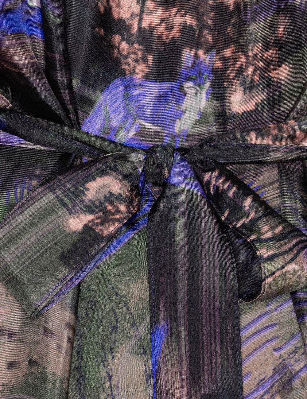 This dress with beautiful abstract nature illustration print by Henrik Vibskov features split sleeves, square fit, and slit up the side. Seasonless + chic.