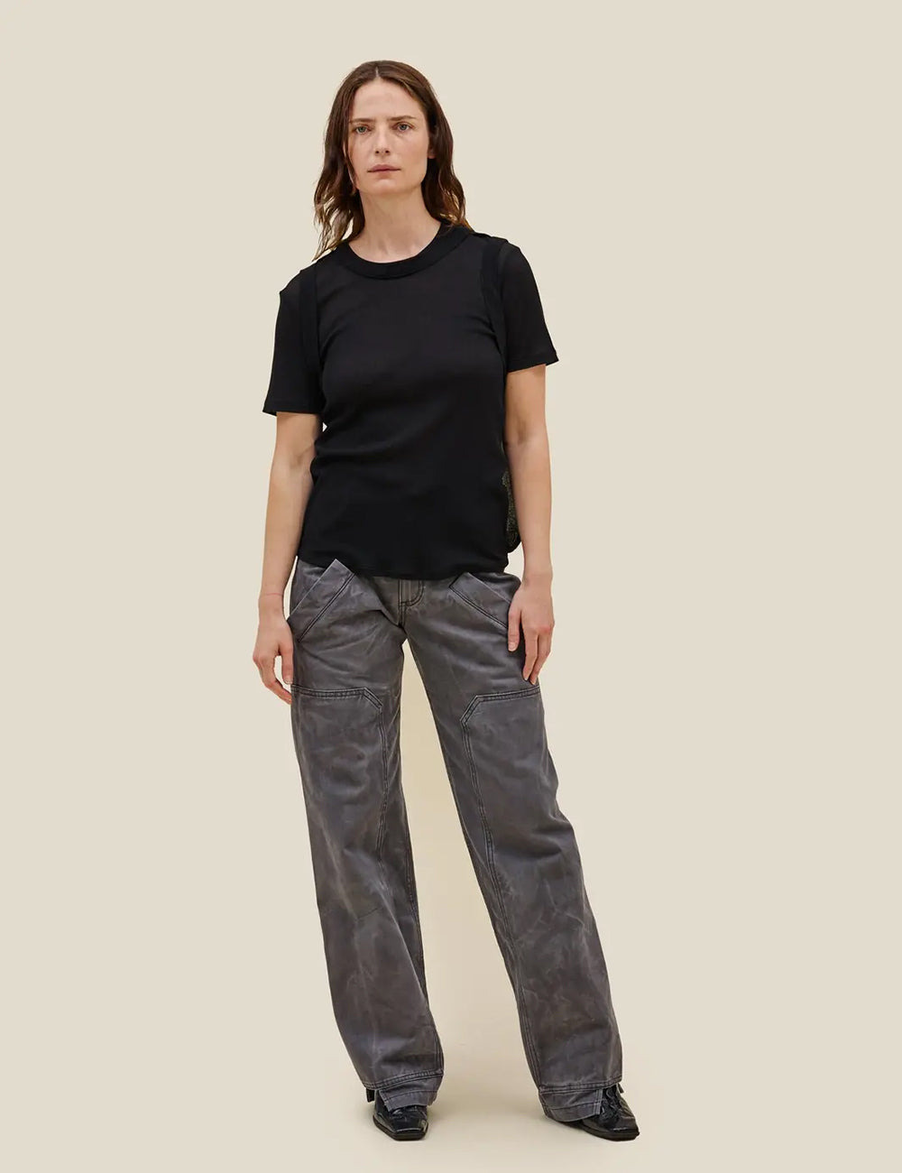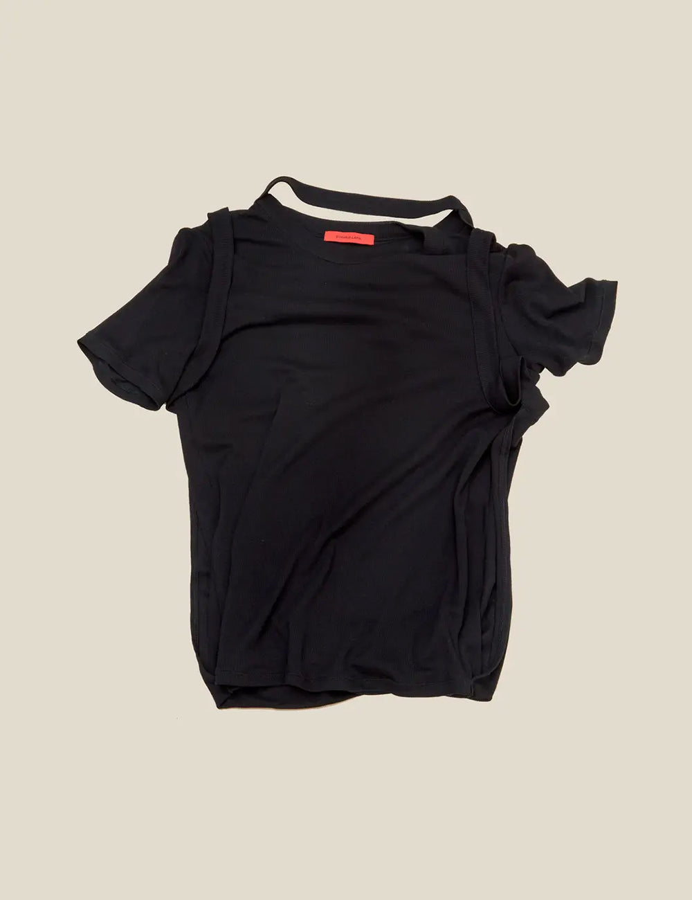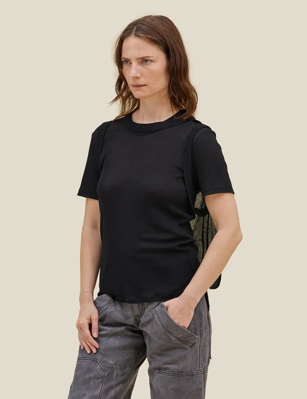 Double-layered tee in fine-gauge Japanese cotton/nylon rib, featuring a hem that folds upward at the back.