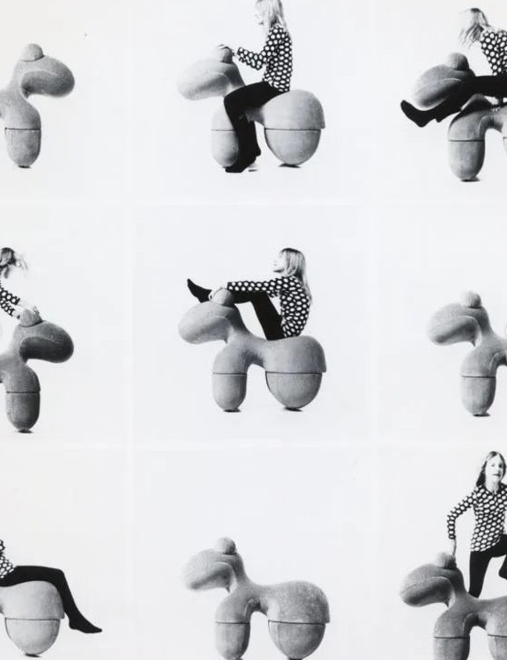 Aarnio created the Pony as a study in form and imagination. It has the proportions of a small animal without any literal features, which keeps it rooted in design rather than novelty. Built from molded foam on a tubular steel frame and covered in upholstery, it pushed Nordic design toward something more sculptural and emotionally expressive. Which made it a radical statement within the otherwise restrained landscape of Nordic design in the 1970s.