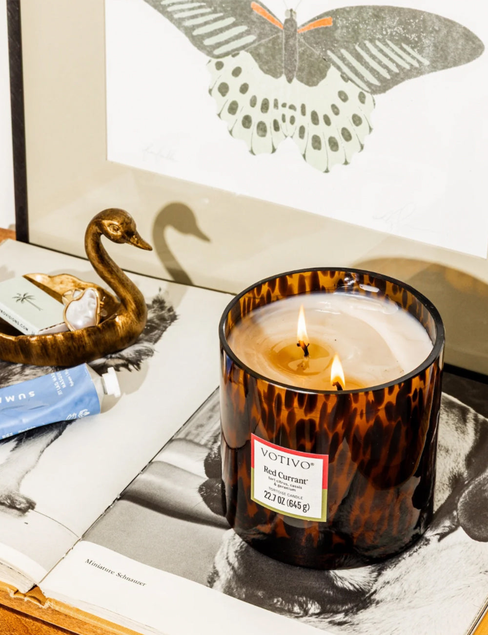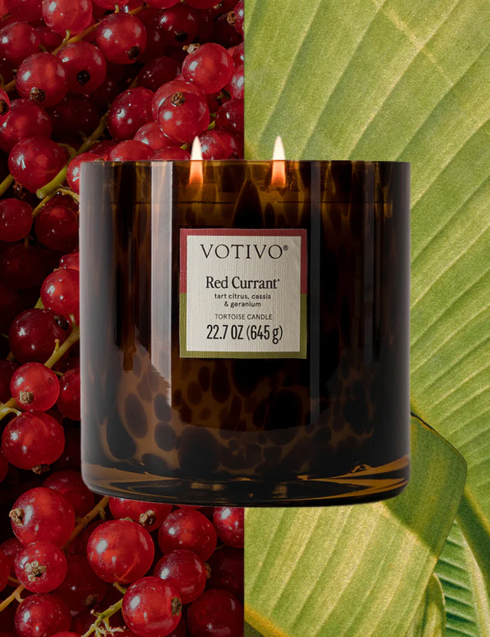 Make a stunning décor statement in any space with the Votivo Tortoise Candle, an elegant tortoiseshell vessel with a chic glossy metal lid. Smells like tart citrus + earthy greens. Feels like sun-drenched leaves + golden rays filtering through the greenhouse windows.