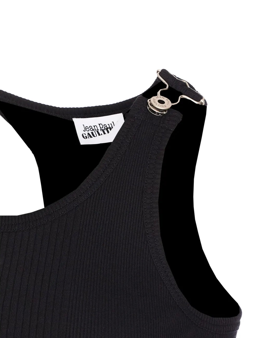 Introducing 'The Straps' tank top from the renowned brand Jean Paul Gaultier. Crafted from 100% cotton, this ribbed tank showcases a unique design with engraved overall details, making it a standout piece. The definition of an elevated basic.