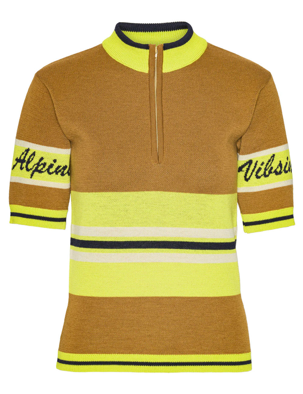 Race Jersey Short Sleeve in Camel Alpini by Henrik Vibskov. Featuring round neck half zip, short sleeves, + fitted design.