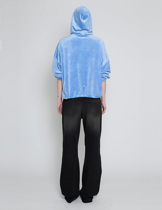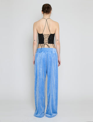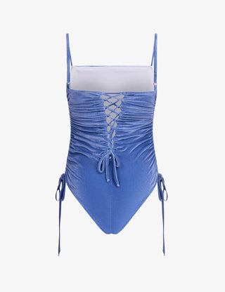 Ocean Blue Velvet Lace-Up Ruched One Piece